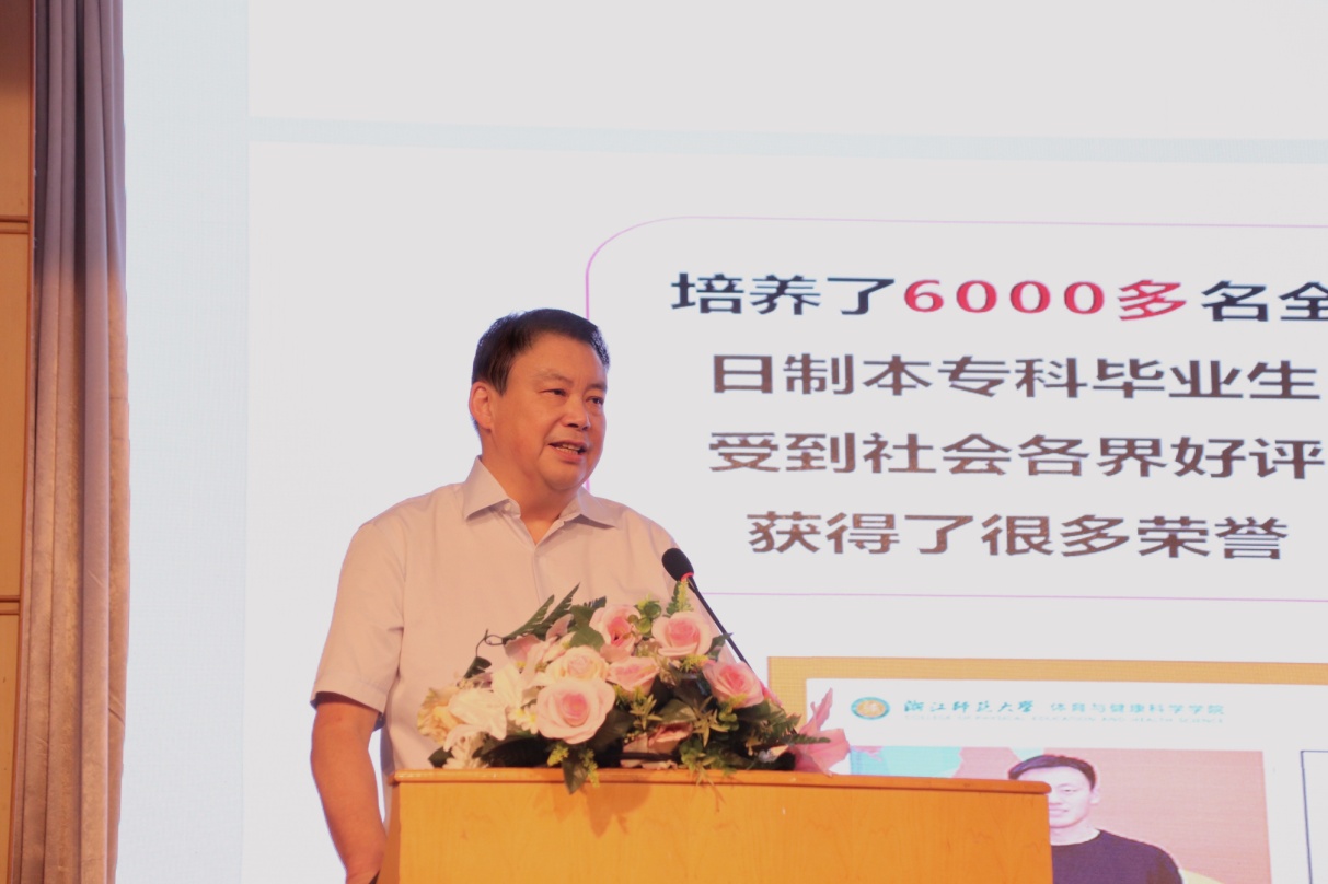 薛岚院长代表学院全体教职工向170名本科生、127名研究生新生表示热烈的欢迎。他详细介绍了学院的办学历史、办学条件、师资队伍、人才培养、学科建设、国际化与开放办学、学院文化等方面的情况,并鼓励大家牢记“厚德诚信 拼搏超越”的院训,开阔视野,放大格局,科学规划,在就读期间重点从升学深造、学科竞赛、创新创业、出国境交流等方面积极提升自身的综合竞争力,争做有担当有作为的新时代体育人。