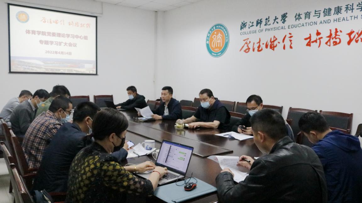 4月14日上午,学院党委书记姜洪友在第二会议室主持召开党委理论学习中心组扩大会议,专题学习《信访工作条例》、习近平总书记在北京冬奥会、冬残奥会总结表彰大会上的讲话、《关于构建更高水平的全民健身公共服务体系的意见》。