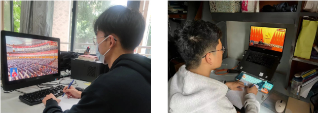 欧冠师生在实习点、寝室、家中通过电视、网络直播等平台收听收看开幕会盛况