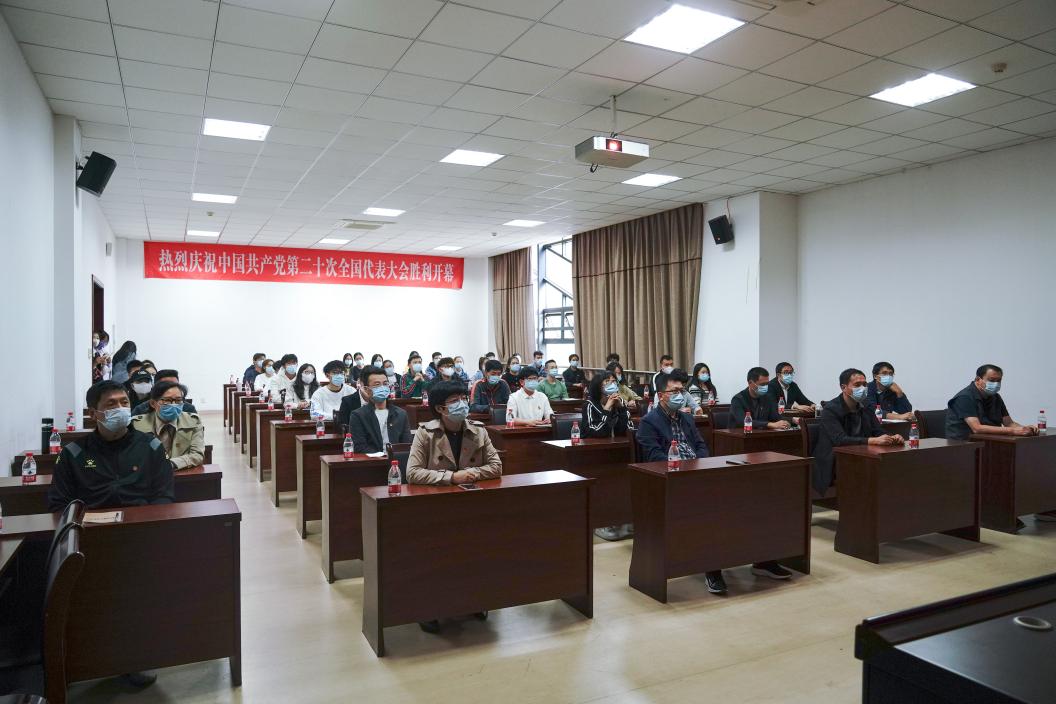 学院党委组织全院师生以线上线下相结合的方式收看大会开幕会。在游泳馆一楼会议室,师生党员代表提前就位,佩戴党徽,以饱满的精神状态仔细聆听报告。在创新工作室,学院学生组织代表怀着激动的心情,集体收看党的二十大开幕直播。