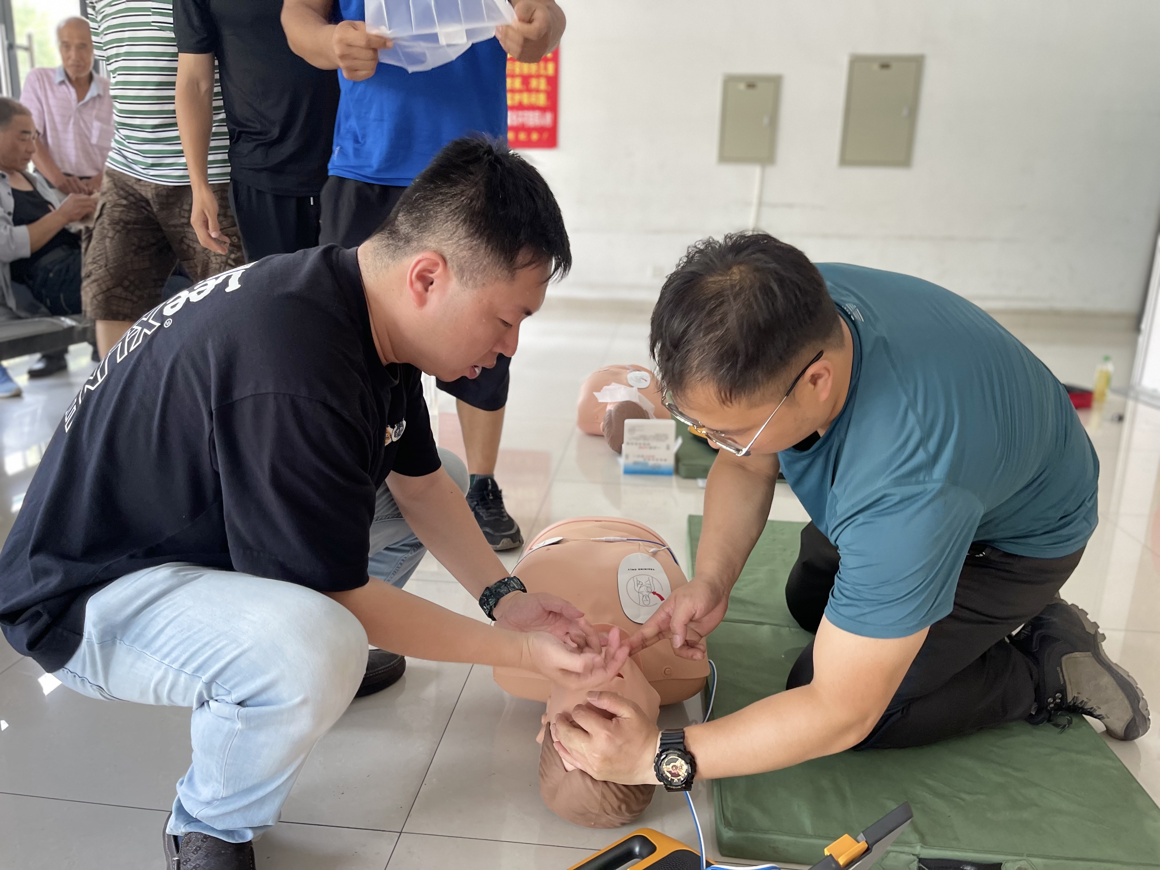 培训中,黄文俊强调了急救的重要性,通过现理论讲解和现场实操相结合的方式,深刻讲解了心肺复苏与自动体外除颤器的适用范围、操作步骤、操作要点和注意事项。参加培训部分人员现场进行了模拟演练,黄文俊进行了详细现场指导,并现场为参训人员解惑答疑。