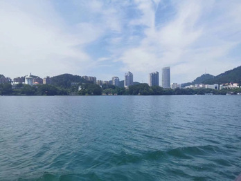 第三站,千岛湖城中湖游船。千岛风光如诗画,一湖碧水秀天下。教师们登上游船,泛舟于千岛湖之上,感受千岛湖美丽的自然景色。