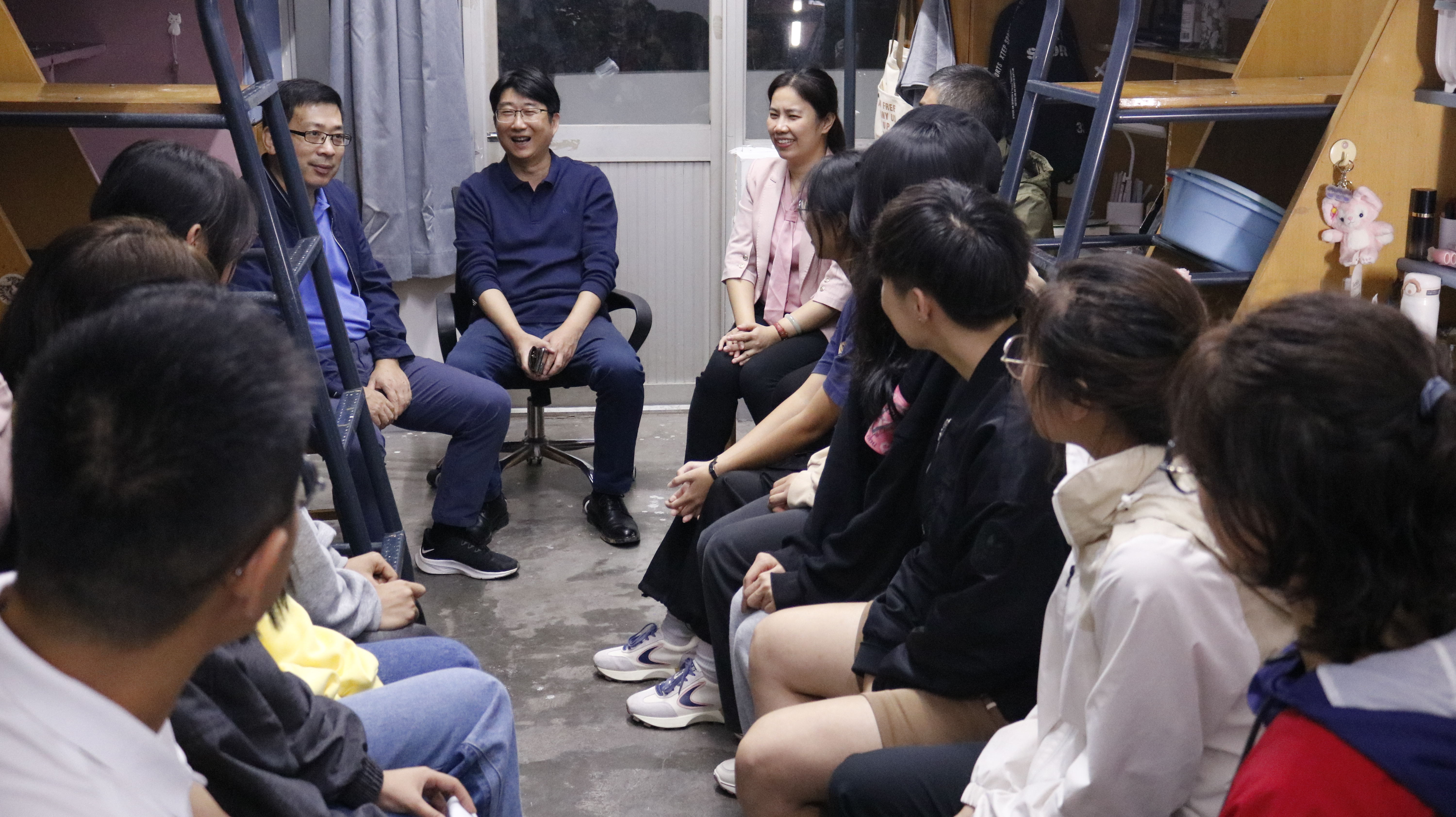 为深入了解新生入学及住宿情况,切实体会新生的思想动态,帮助他们更快适应新生活、新环境,10月7日晚,副校长林一钢,教务处处长陈敏,学生处副处长薛俊强在欧冠党委书记姜洪友等学院领导、学工办辅导员、新生学长学姐的陪同下走访了欧冠本科新生寝室。