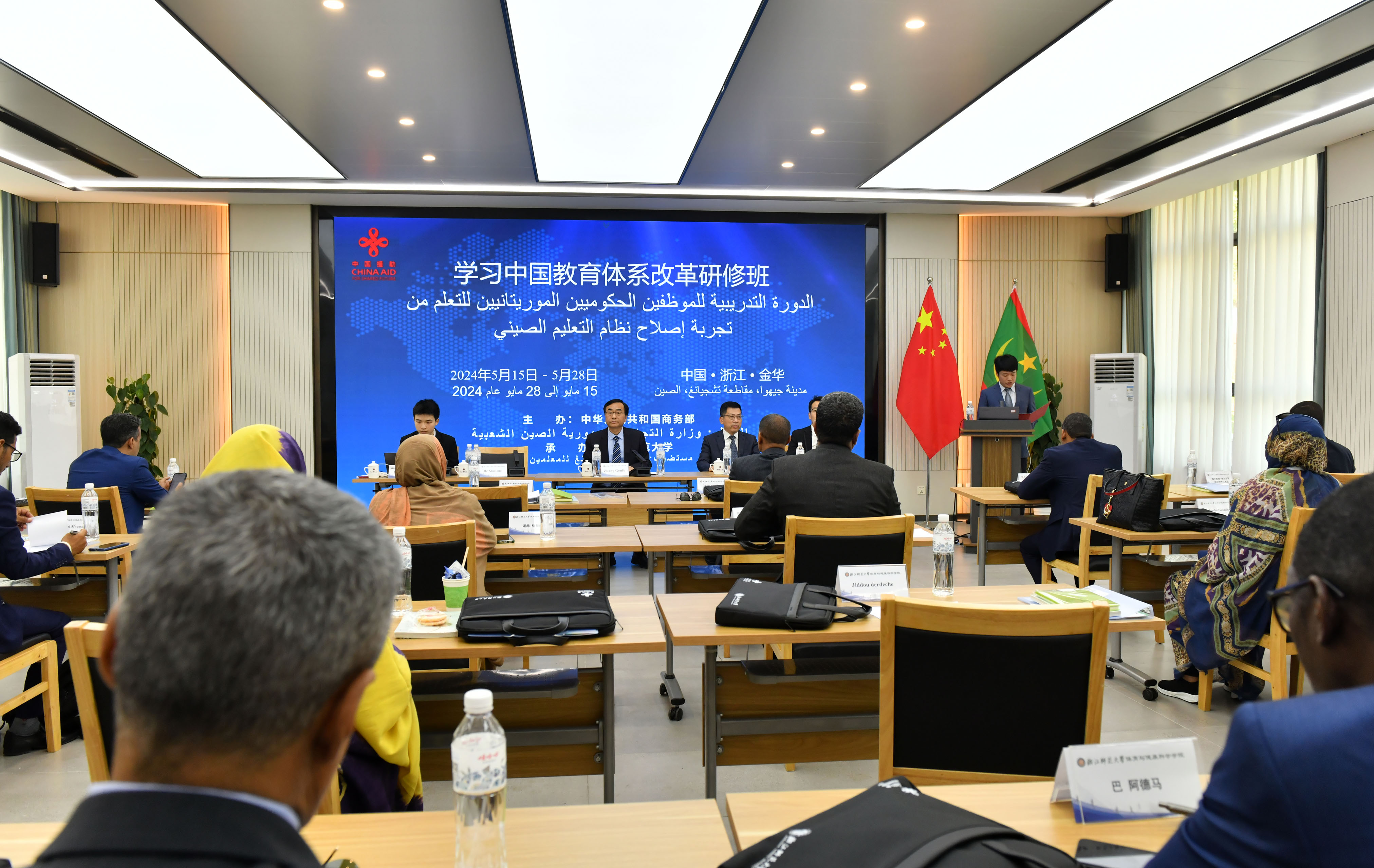 5月15日下午,由中华人民共和国商务部主办,欧冠官方网站承办的“毛里塔尼亚学习中国教育体系改革研修班”开班仪式在正阳楼3号楼1号会议室举行。欧冠联赛官网校务委员会副主任、原副校长张根福,欧冠官方网站党委书记姜洪友、项目负责人郑哲、班主任叶梦馨以及来自毛里塔尼亚外交部、教育部、高教部、就业部、财政部、经济部、商业部、石油部、装备运输部、努瓦克肖特大学等部门单位的29名学员参加开班仪式。开班仪式由欧冠官方网站副院长何晓龙主持。